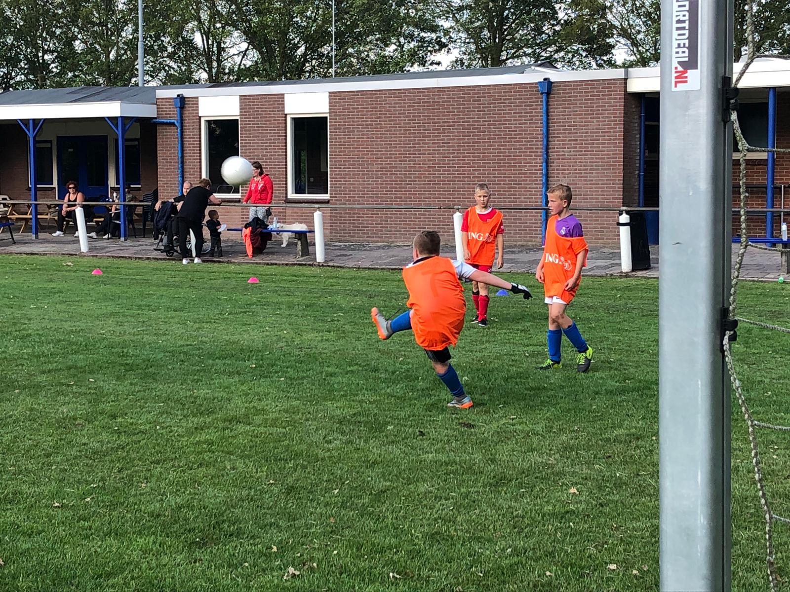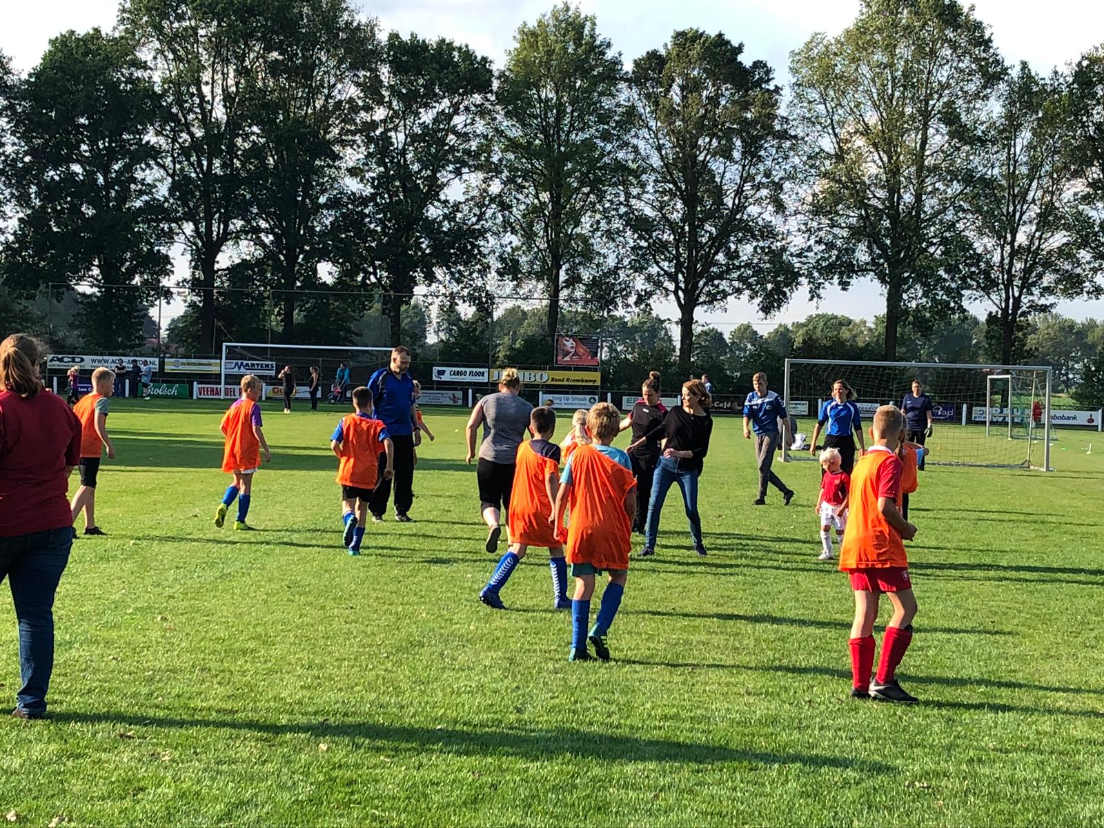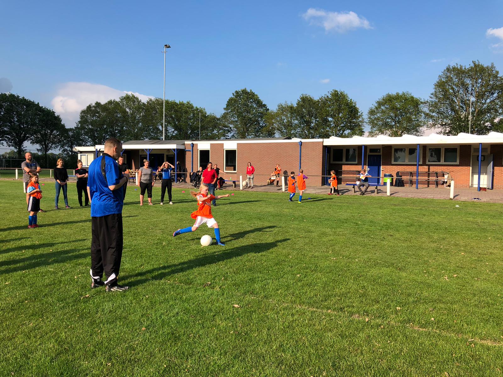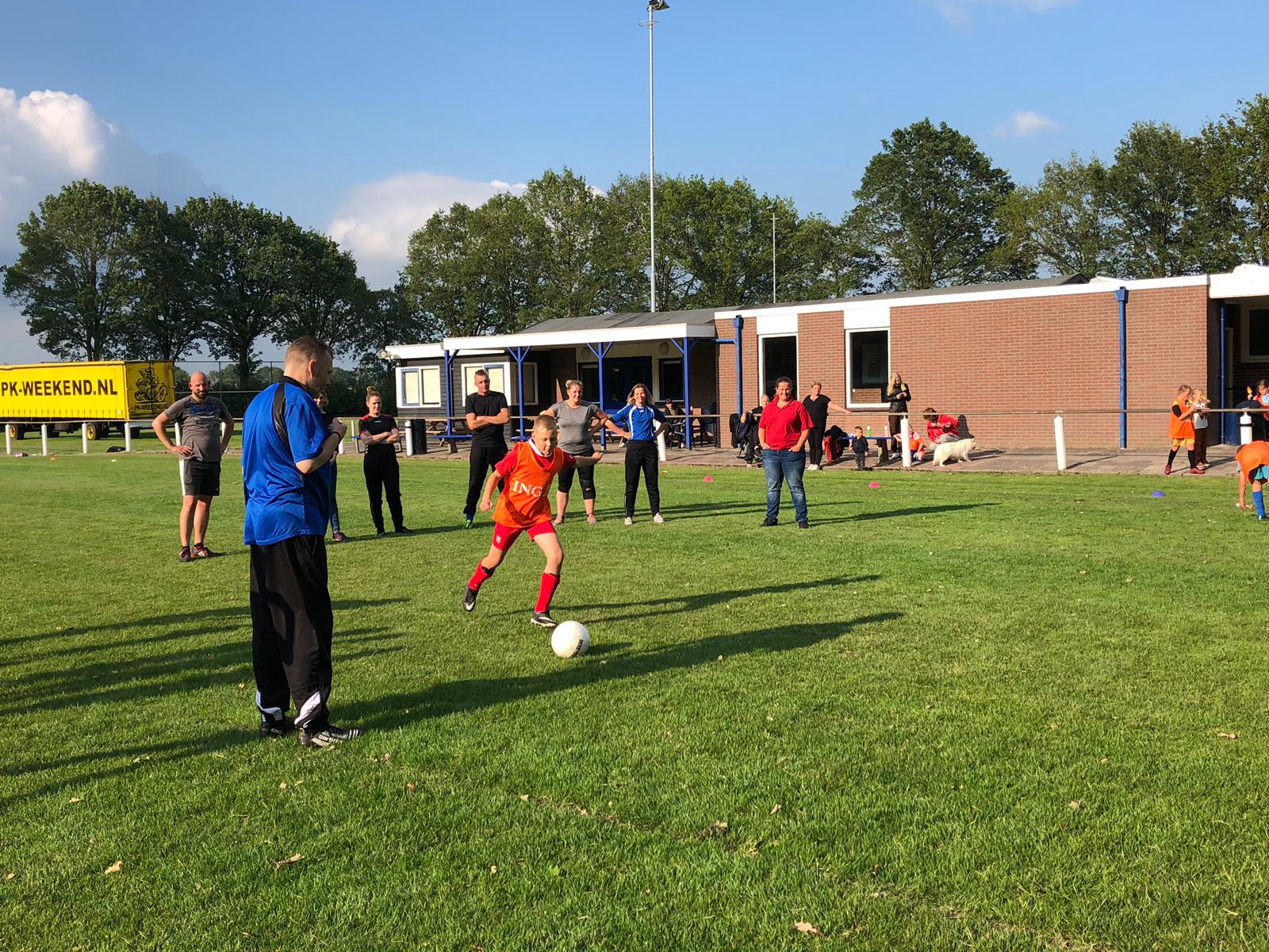 Na een warming-up van beide teams, kon de leidsman van vandaag voor aanvang fluiten. Team JO10, vandaag speciaal gehuld in het Oranje, begon fanatiek aan de wedstrijd. Gelijk vanaf de aftrap was het Brechje Timmer die het spel opende aan de rechterkant. Milan Fik benutte de ruimte die werd gelaten door team Blauw, ofwel de oudjes, en gaf het leer netjes voor op Sven Koops. Die liet het net bollen en zo stond het al snel 1-0.