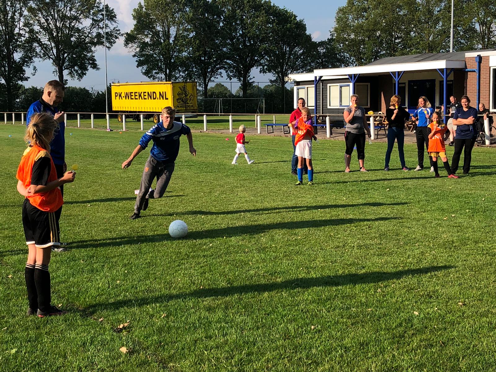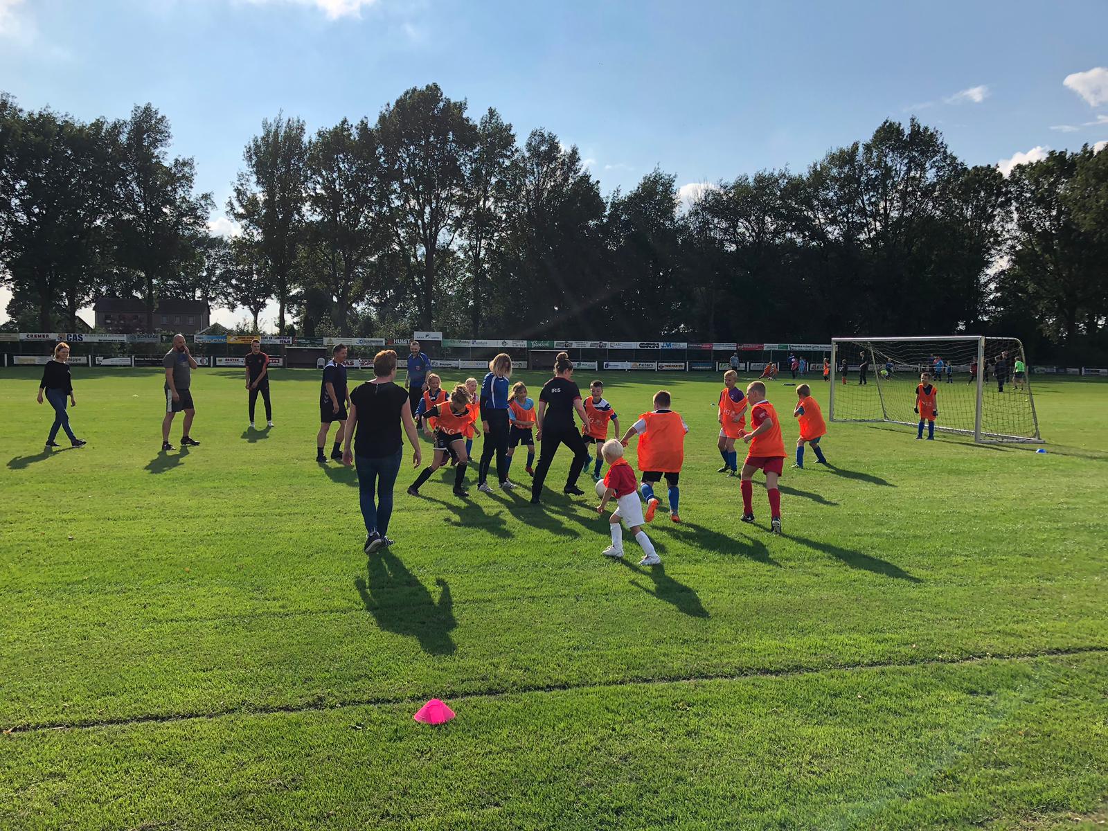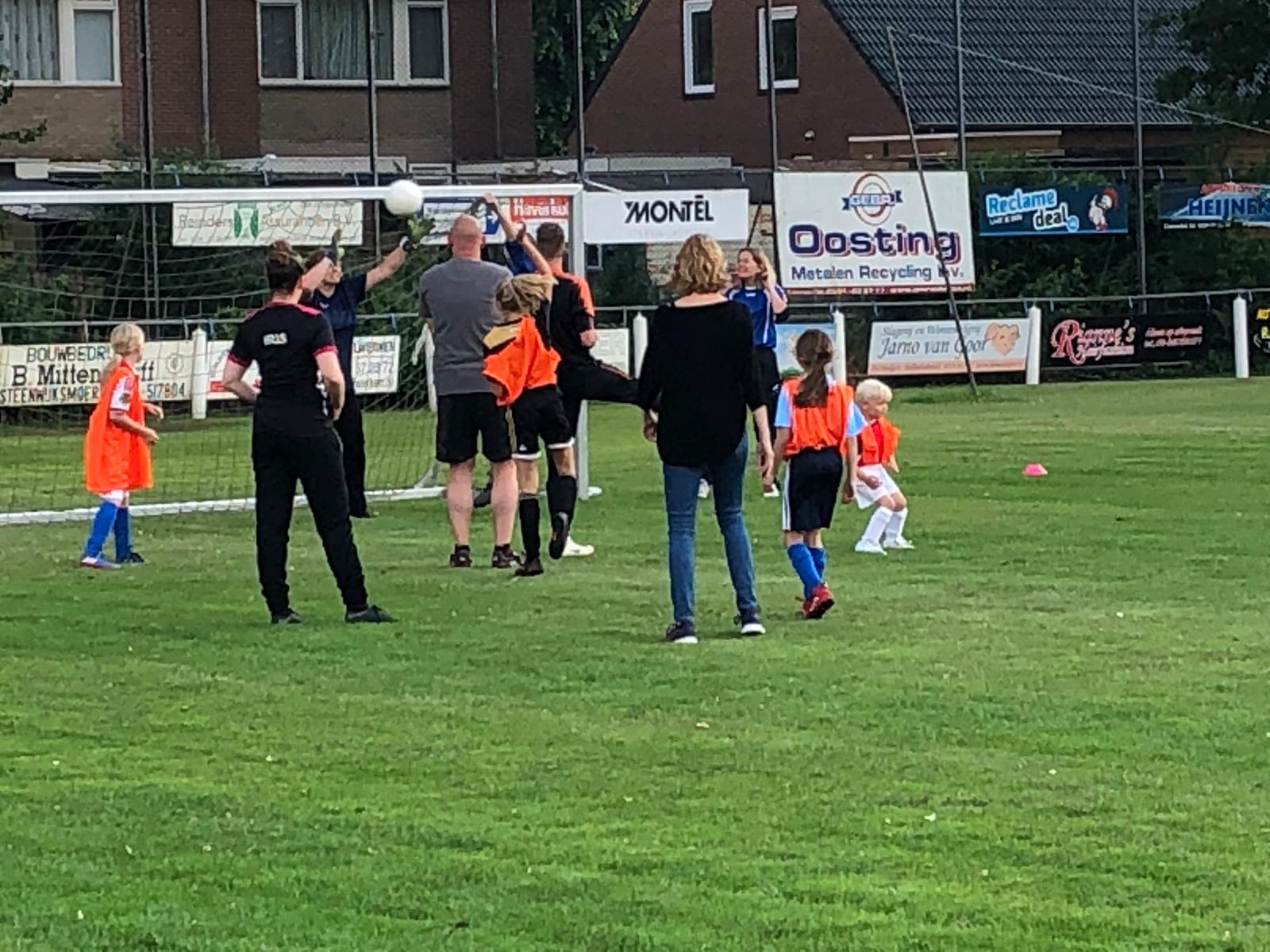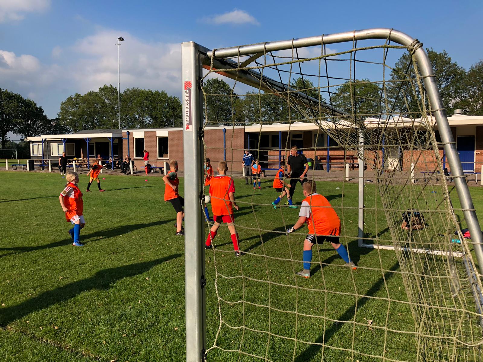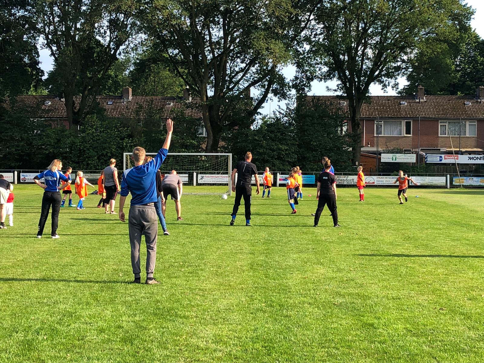Na een warming-up van beide teams, kon de leidsman van vandaag voor aanvang fluiten. Team JO10, vandaag speciaal gehuld in het Oranje, begon fanatiek aan de wedstrijd. Gelijk vanaf de aftrap was het Brechje Timmer die het spel opende aan de rechterkant. Milan Fik benutte de ruimte die werd gelaten door team Blauw, ofwel de oudjes, en gaf het leer netjes voor op Sven Koops. Die liet het net bollen en zo stond het al snel 1-0.