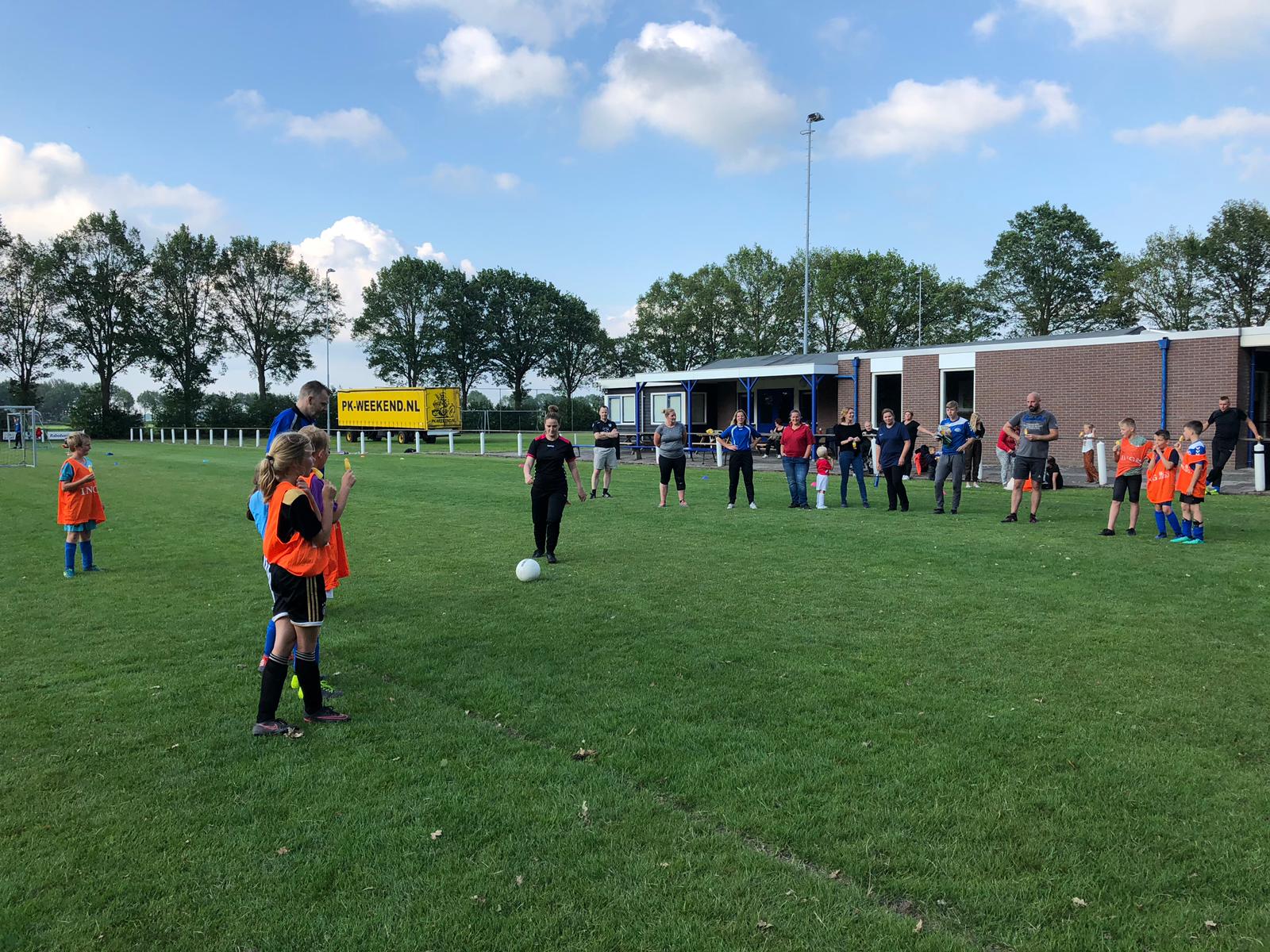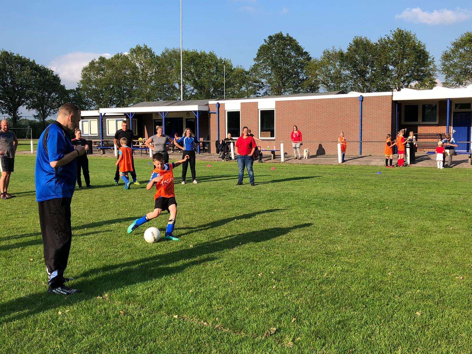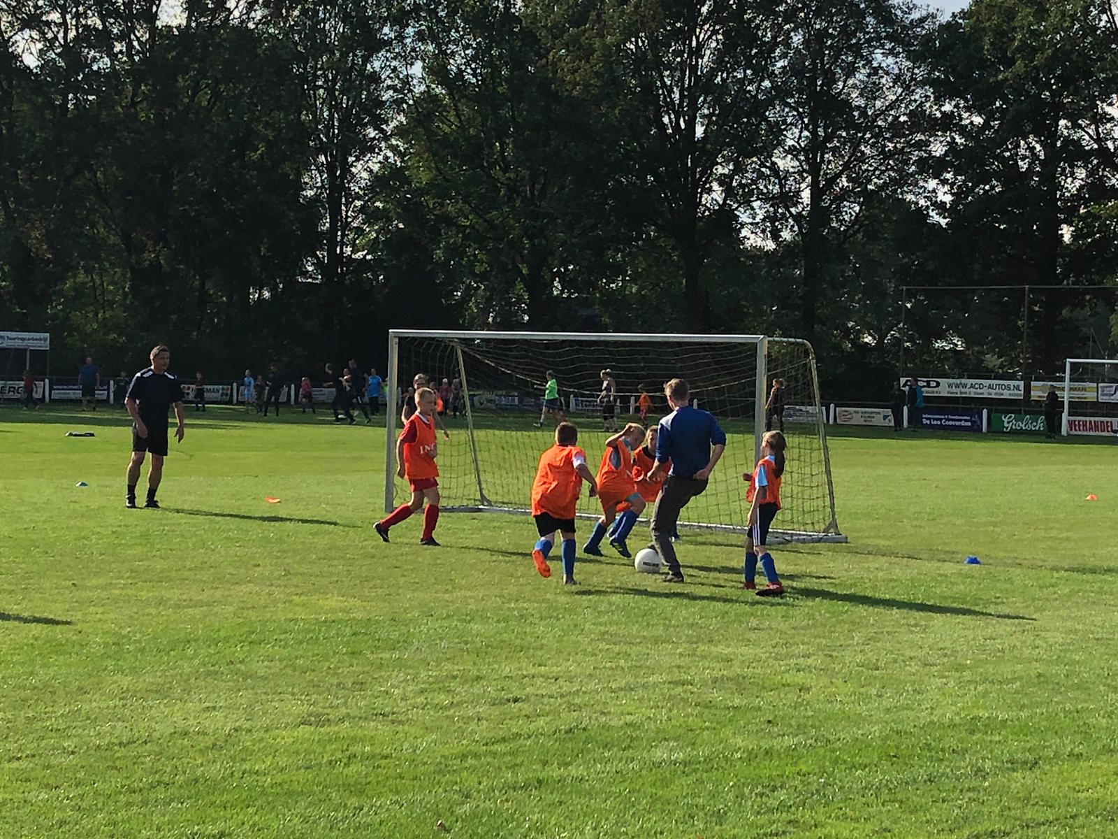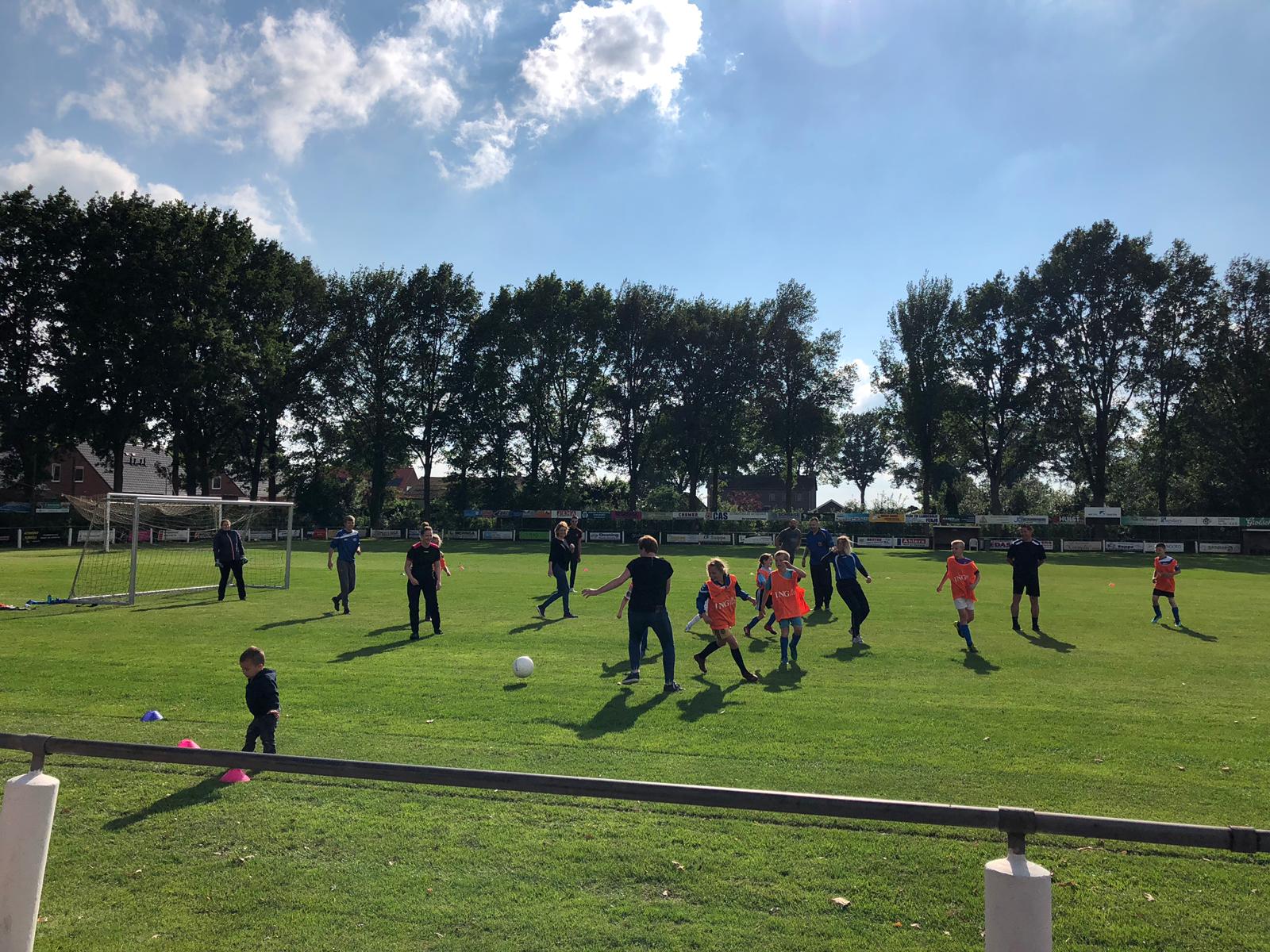 Na een warming-up van beide teams, kon de leidsman van vandaag voor aanvang fluiten. Team JO10, vandaag speciaal gehuld in het Oranje, begon fanatiek aan de wedstrijd. Gelijk vanaf de aftrap was het Brechje Timmer die het spel opende aan de rechterkant. Milan Fik benutte de ruimte die werd gelaten door team Blauw, ofwel de oudjes, en gaf het leer netjes voor op Sven Koops. Die liet het net bollen en zo stond het al snel 1-0.