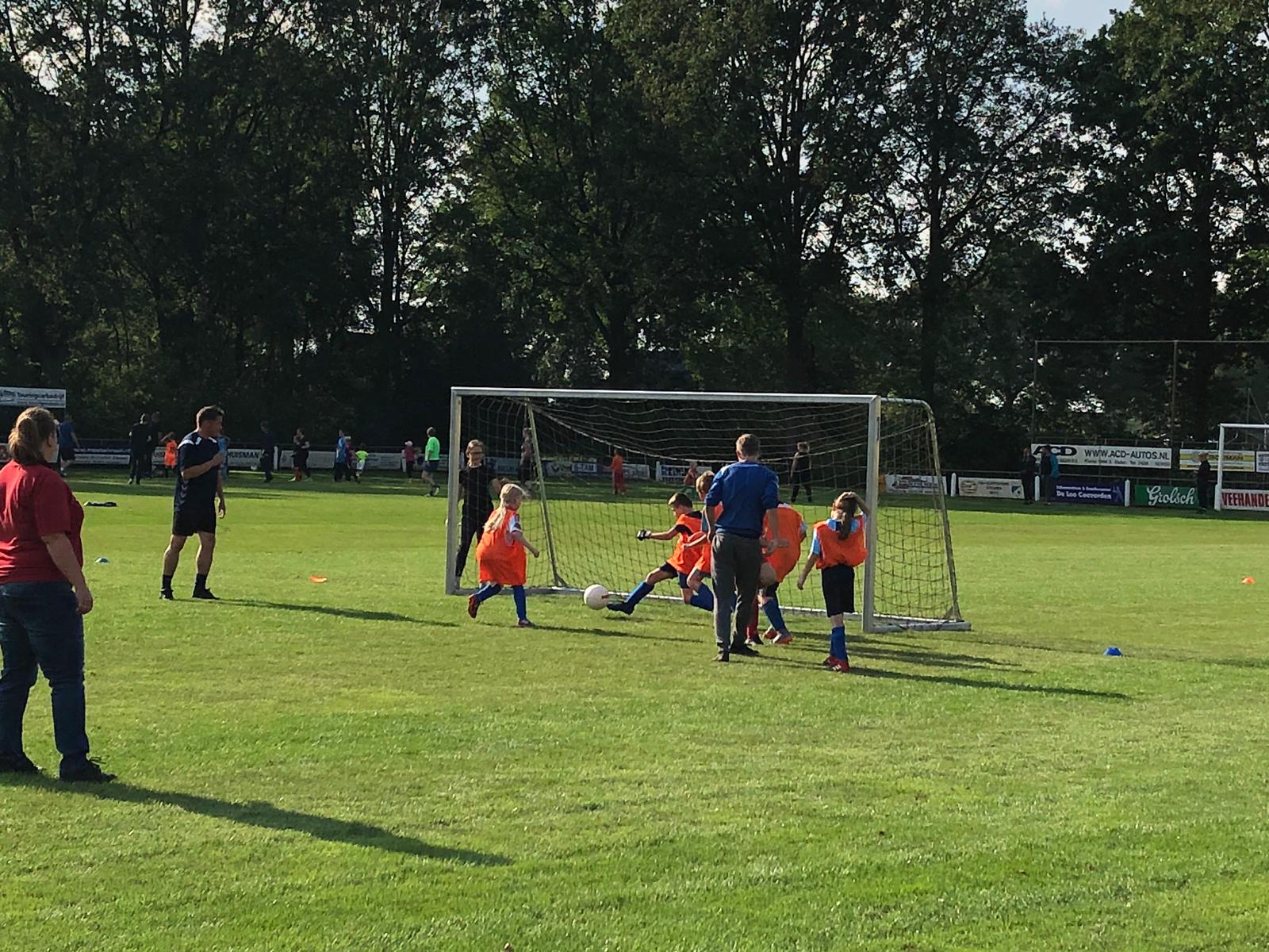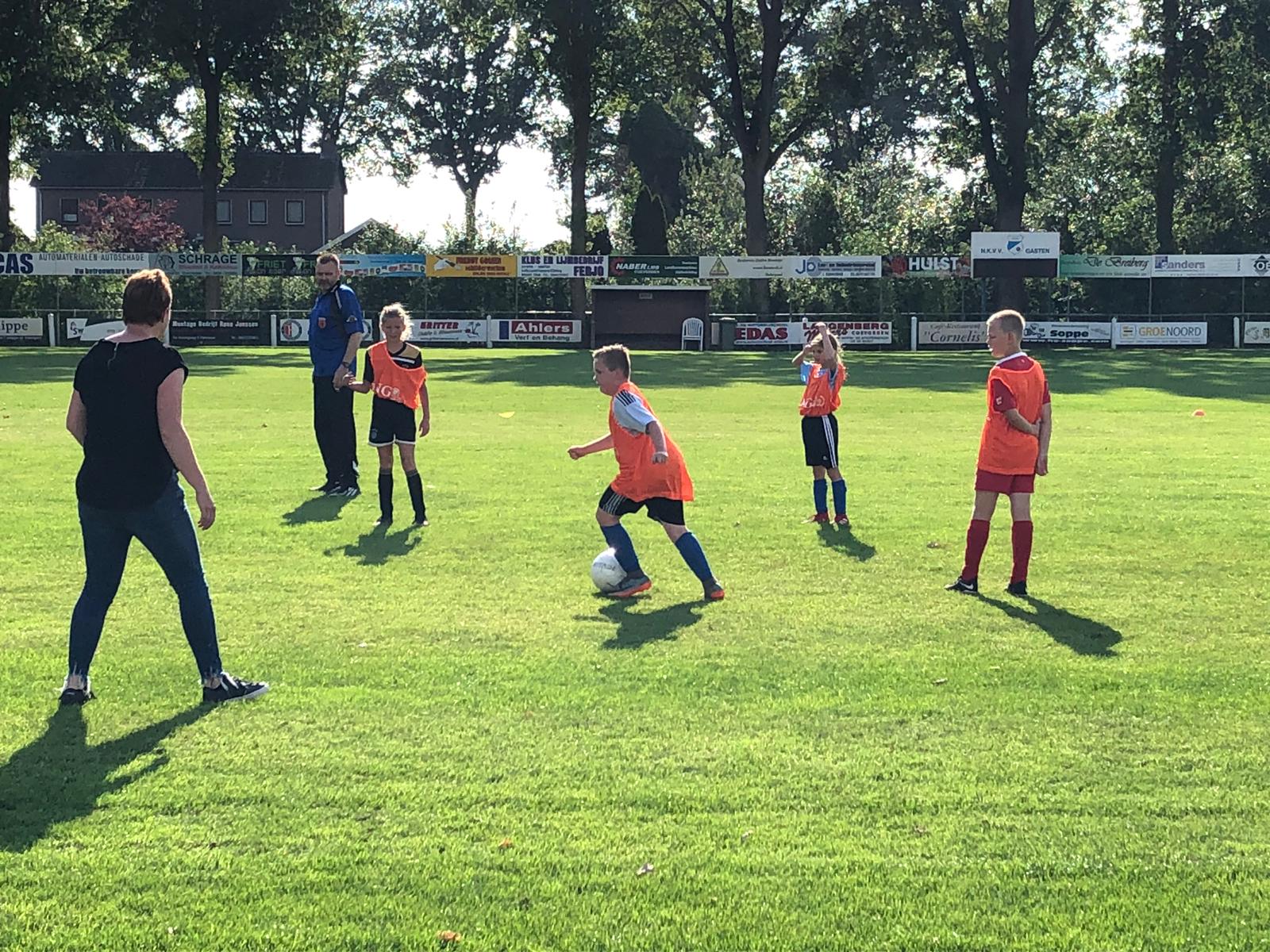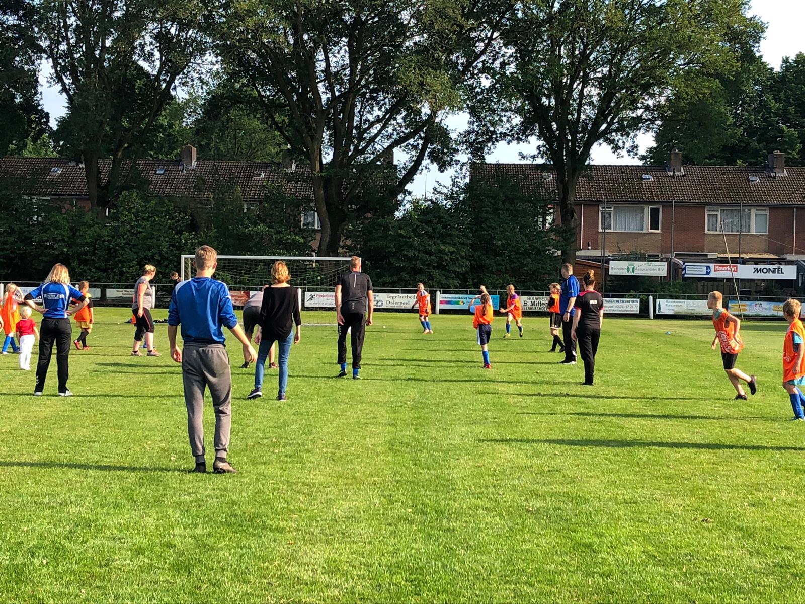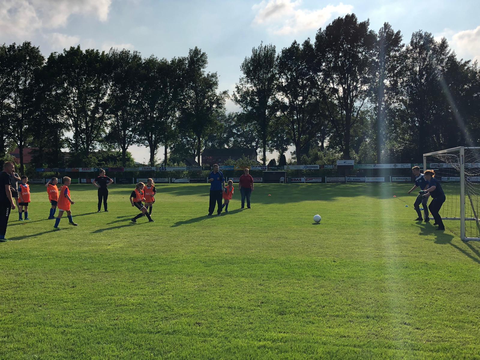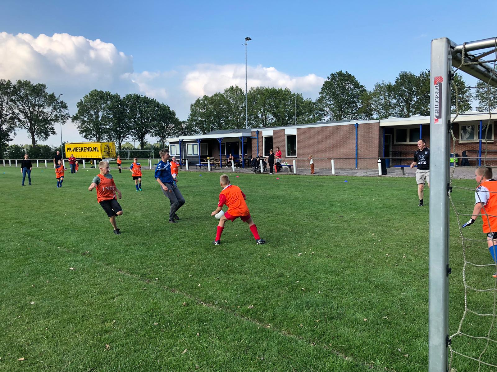 Na een warming-up van beide teams, kon de leidsman van vandaag voor aanvang fluiten. Team JO10, vandaag speciaal gehuld in het Oranje, begon fanatiek aan de wedstrijd. Gelijk vanaf de aftrap was het Brechje Timmer die het spel opende aan de rechterkant. Milan Fik benutte de ruimte die werd gelaten door team Blauw, ofwel de oudjes, en gaf het leer netjes voor op Sven Koops. Die liet het net bollen en zo stond het al snel 1-0.