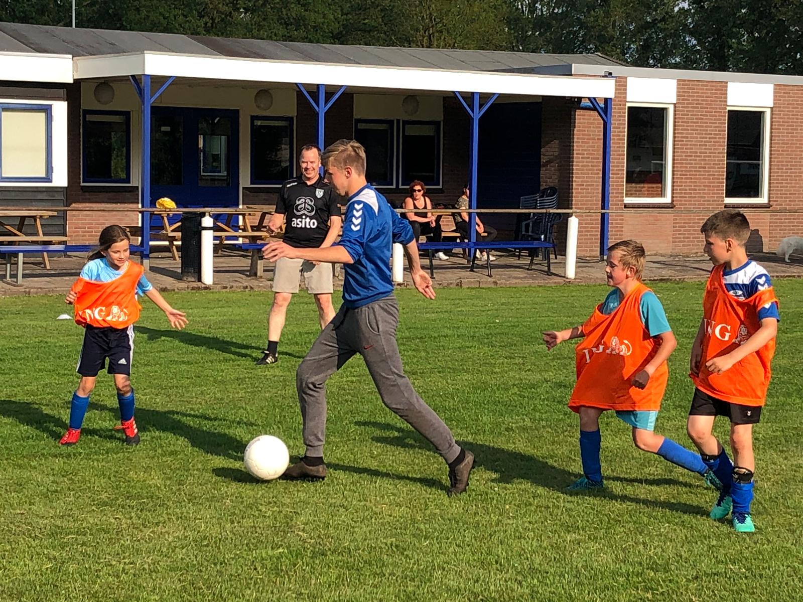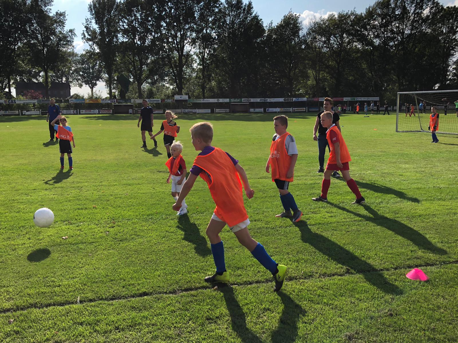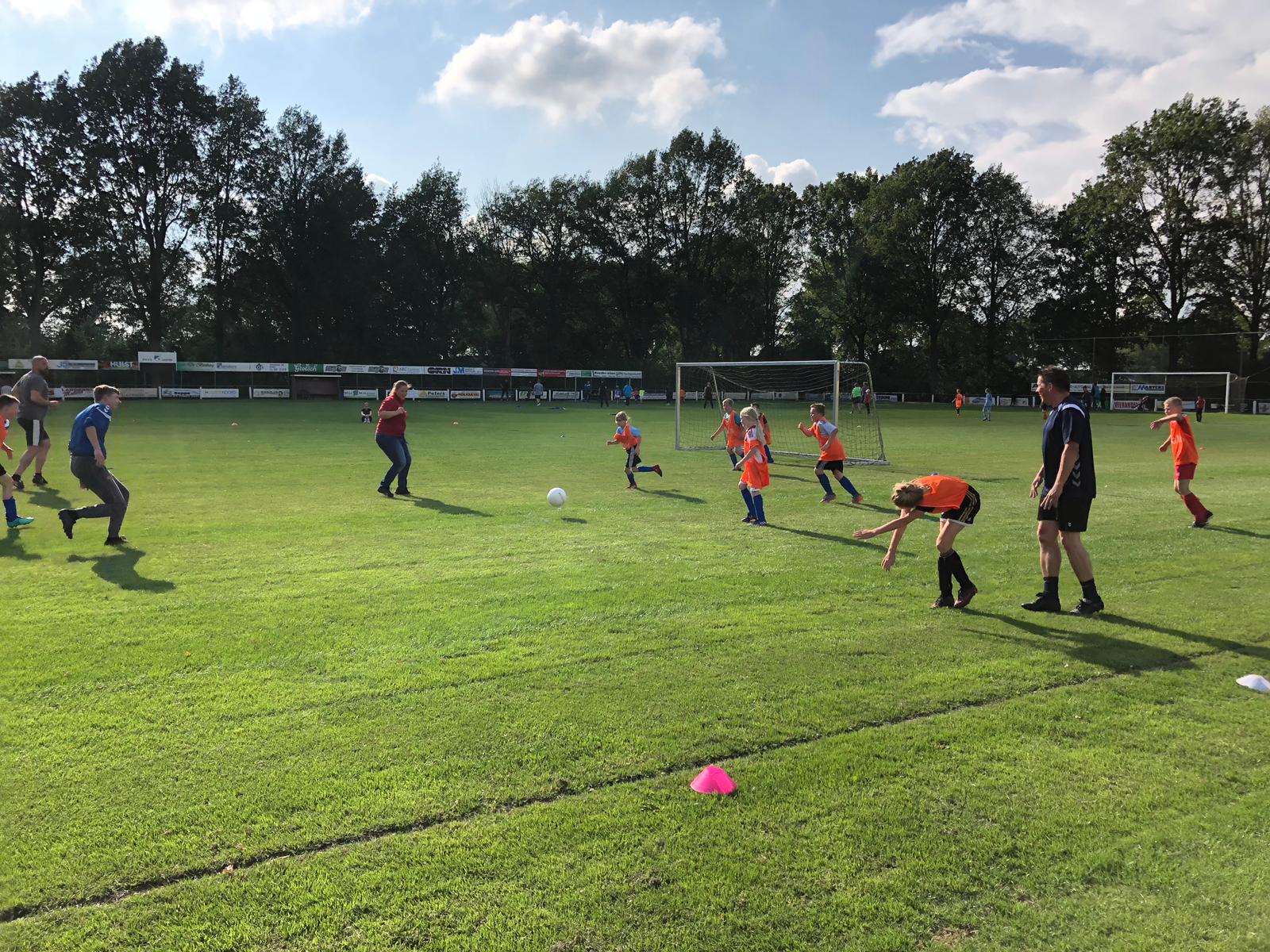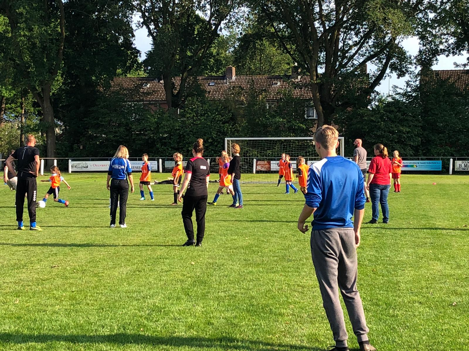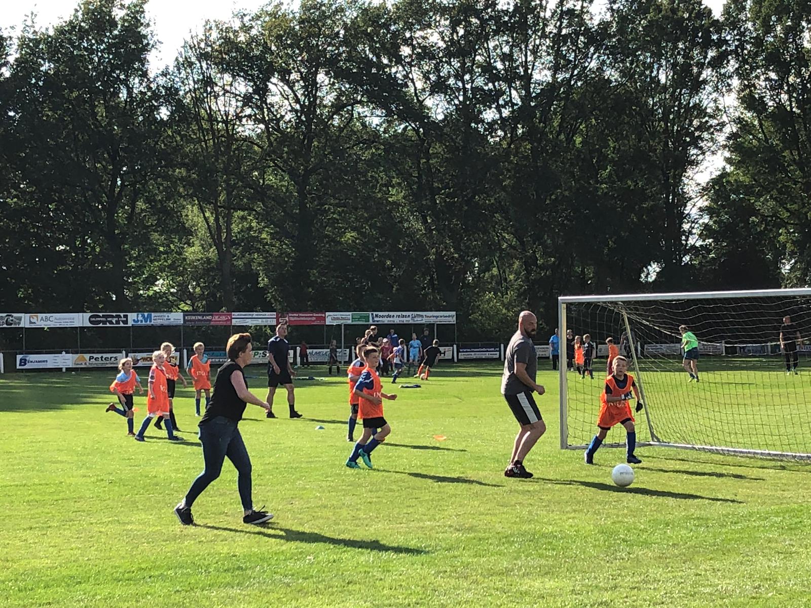 Na een warming-up van beide teams, kon de leidsman van vandaag voor aanvang fluiten. Team JO10, vandaag speciaal gehuld in het Oranje, begon fanatiek aan de wedstrijd. Gelijk vanaf de aftrap was het Brechje Timmer die het spel opende aan de rechterkant. Milan Fik benutte de ruimte die werd gelaten door team Blauw, ofwel de oudjes, en gaf het leer netjes voor op Sven Koops. Die liet het net bollen en zo stond het al snel 1-0.