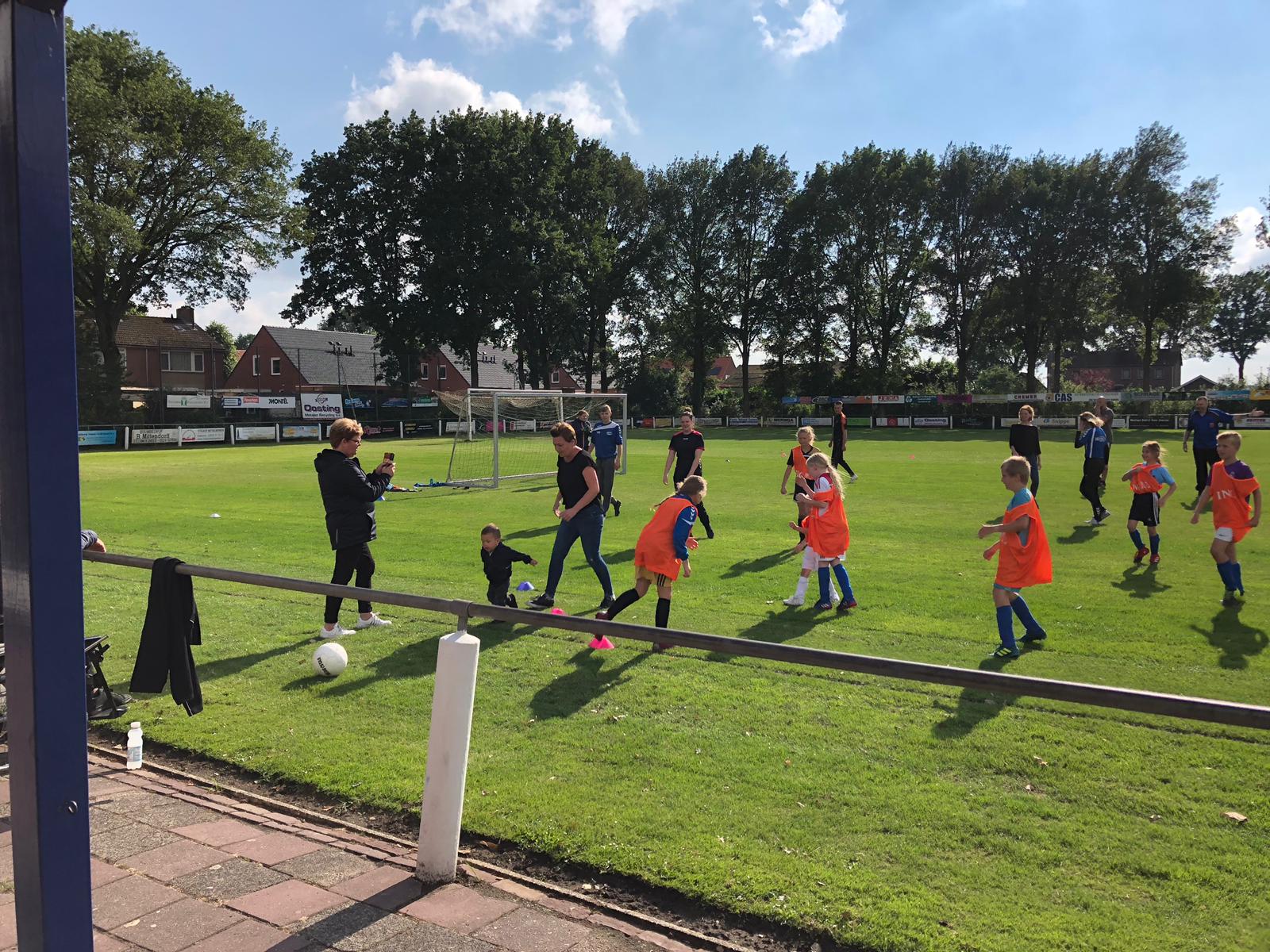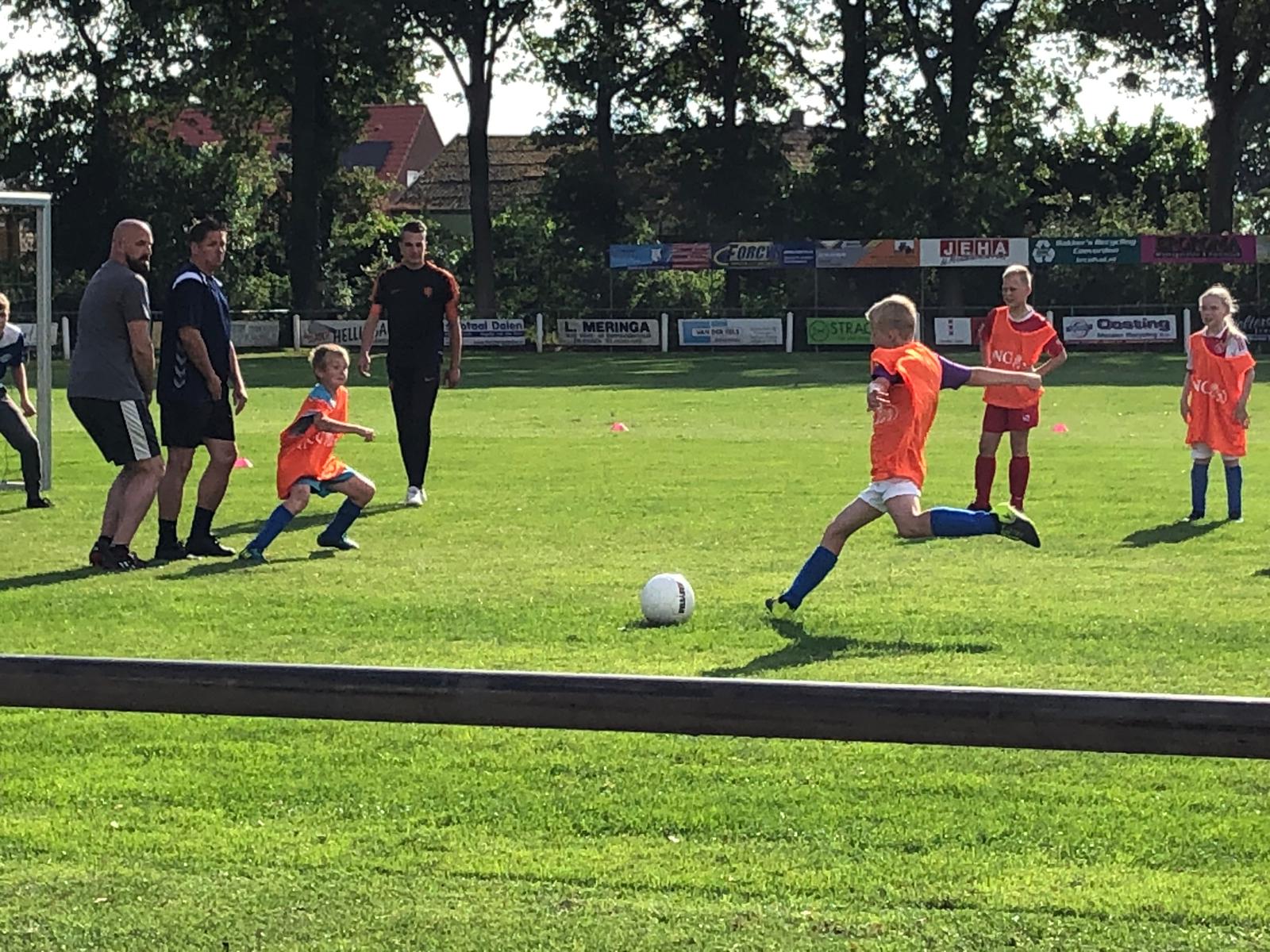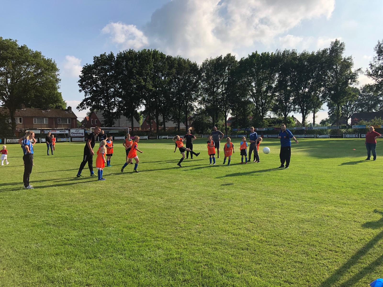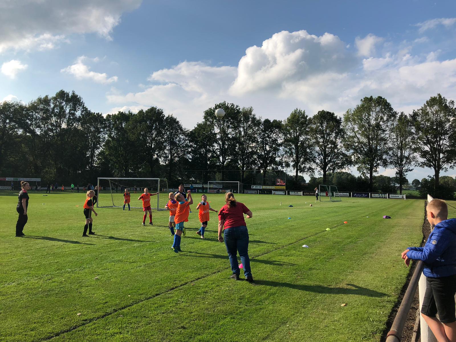 Na een warming-up van beide teams, kon de leidsman van vandaag voor aanvang fluiten. Team JO10, vandaag speciaal gehuld in het Oranje, begon fanatiek aan de wedstrijd. Gelijk vanaf de aftrap was het Brechje Timmer die het spel opende aan de rechterkant. Milan Fik benutte de ruimte die werd gelaten door team Blauw, ofwel de oudjes, en gaf het leer netjes voor op Sven Koops. Die liet het net bollen en zo stond het al snel 1-0.