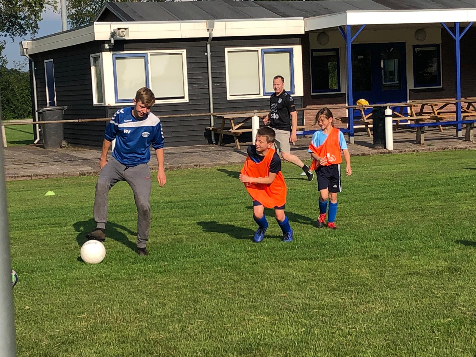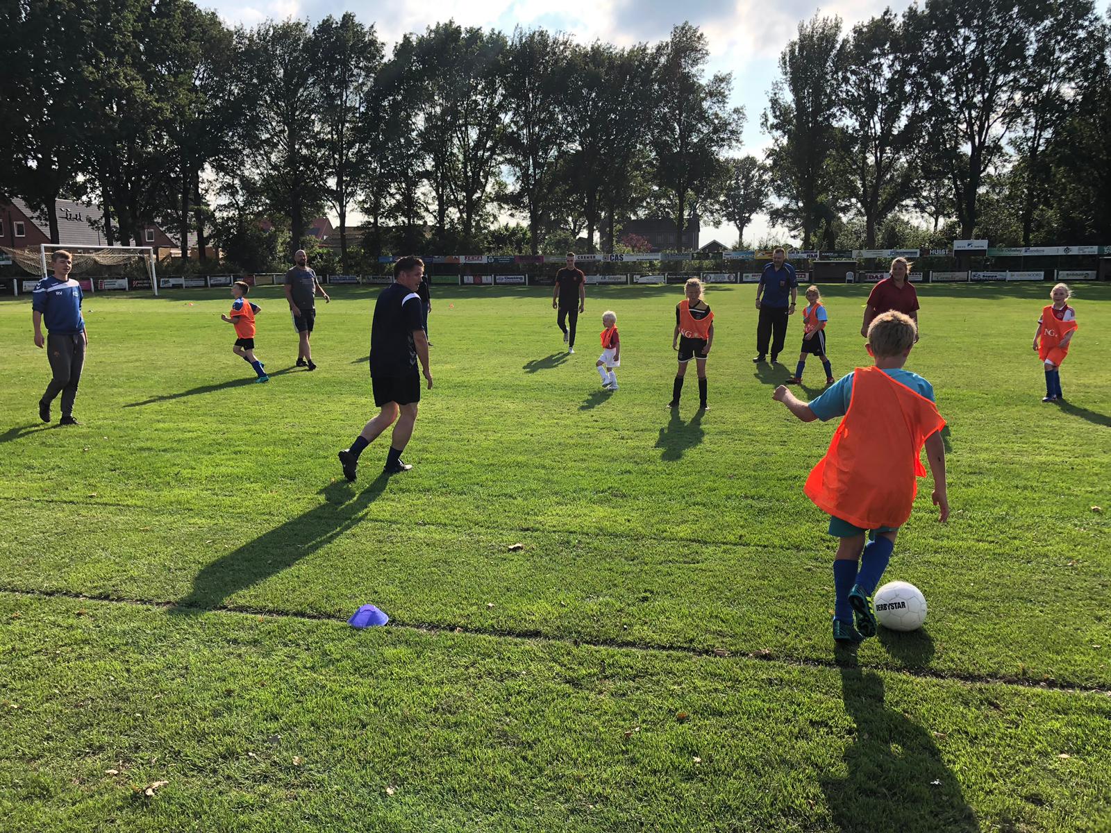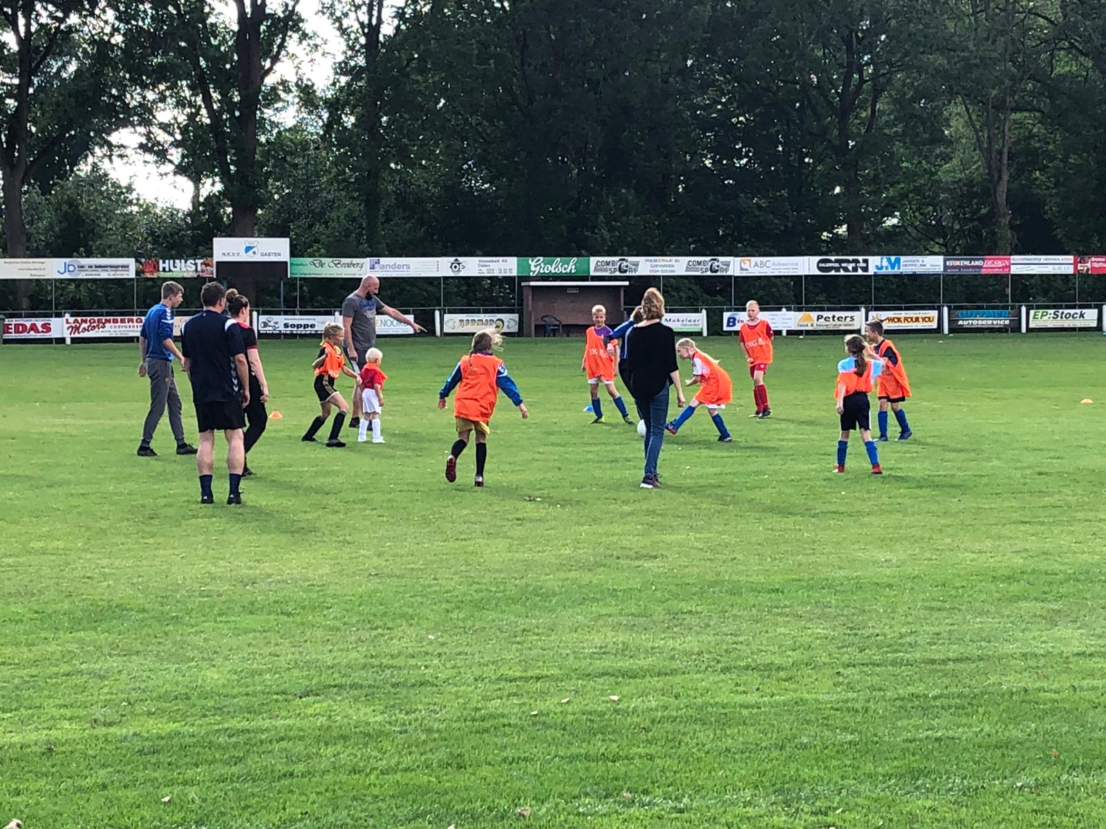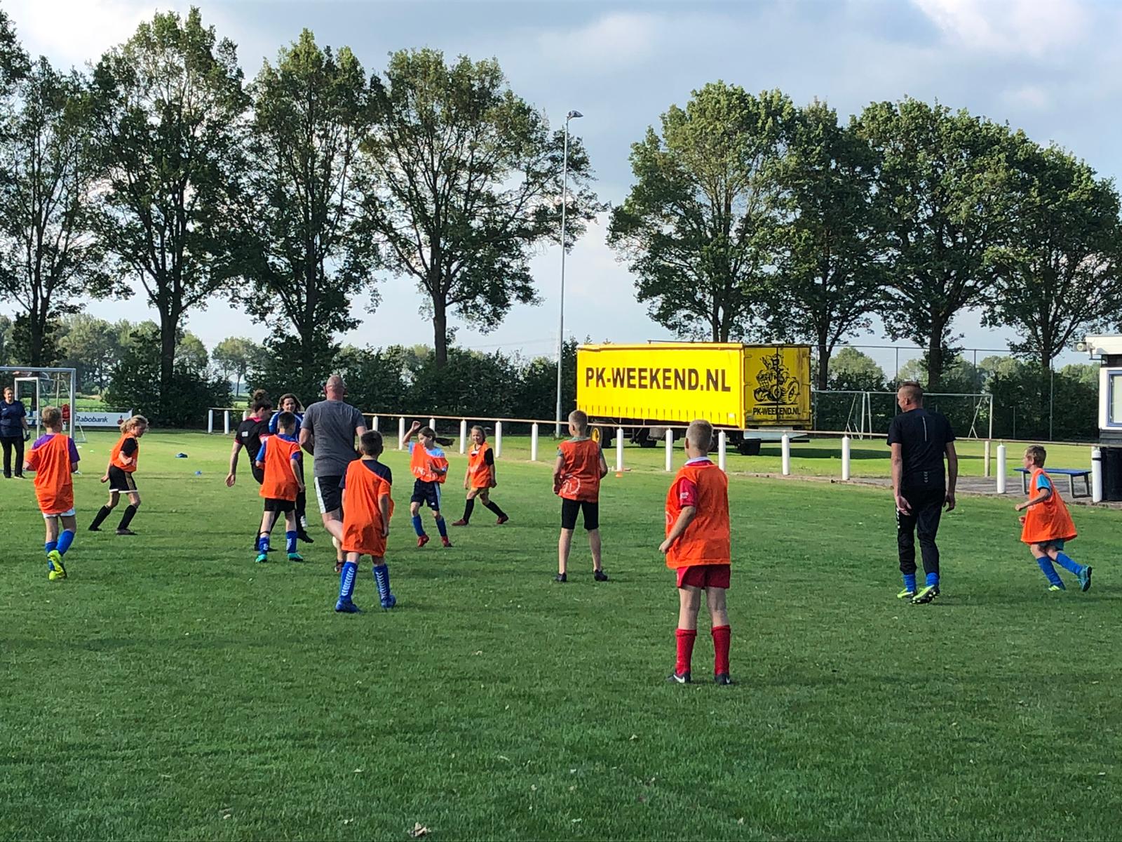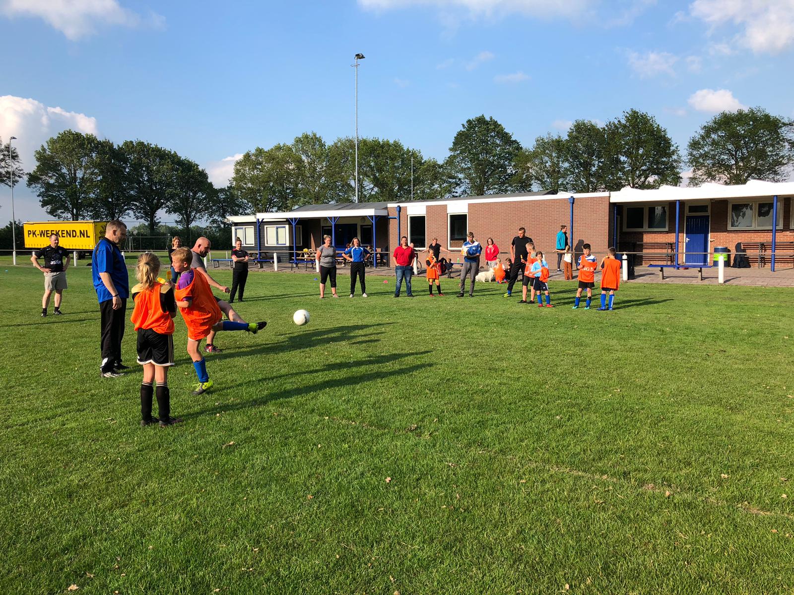 Na een warming-up van beide teams, kon de leidsman van vandaag voor aanvang fluiten. Team JO10, vandaag speciaal gehuld in het Oranje, begon fanatiek aan de wedstrijd. Gelijk vanaf de aftrap was het Brechje Timmer die het spel opende aan de rechterkant. Milan Fik benutte de ruimte die werd gelaten door team Blauw, ofwel de oudjes, en gaf het leer netjes voor op Sven Koops. Die liet het net bollen en zo stond het al snel 1-0.