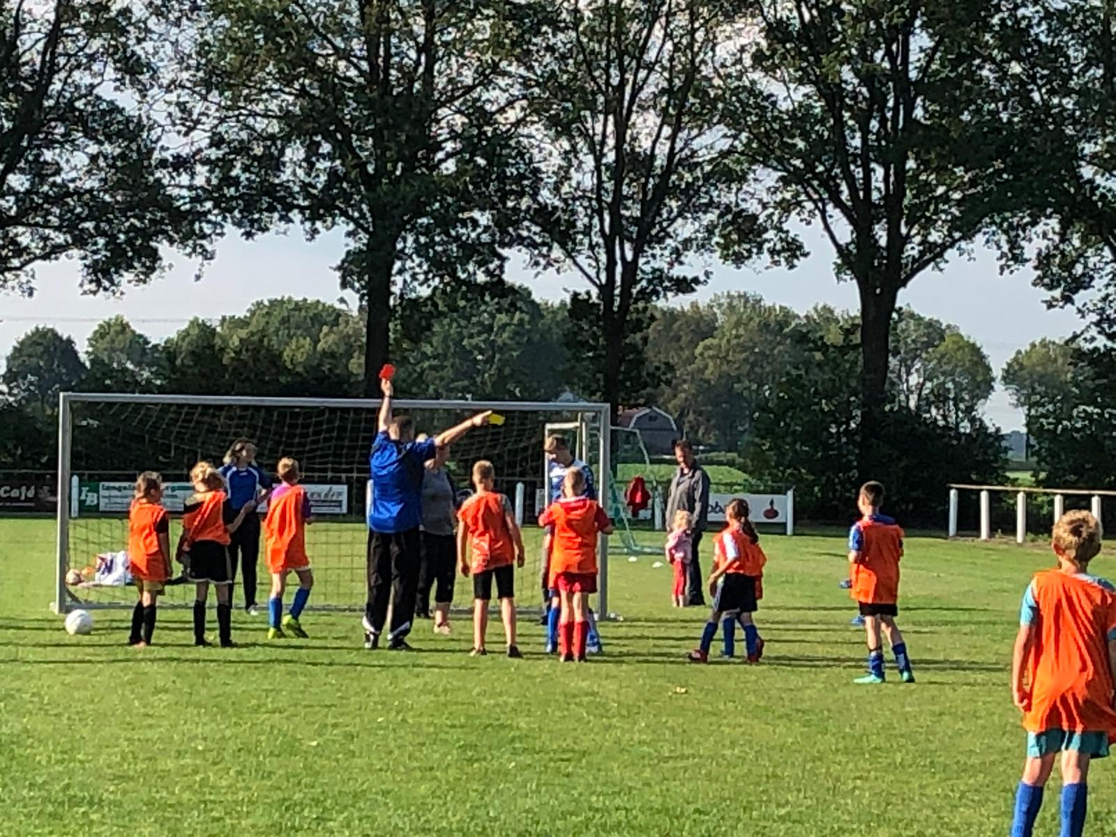 Team Oranje rekende echter buiten de gastspeler van vandaag. De jonge Daan Scholte, inderdaad het zusje van, kreeg het op zijn mini heupen. Met weinig tot geen richtinggevoel liep hij in één lijn naar de Oranje goal, al had hij ook zelf een Oranje hesje aan. Spelers van JO10 probeerden hem nog een halt toe te roepen, maar de goal was al een feit. De 3-3 was ook gelijk een teken voor de leidsman om te fluiten voor de rust.