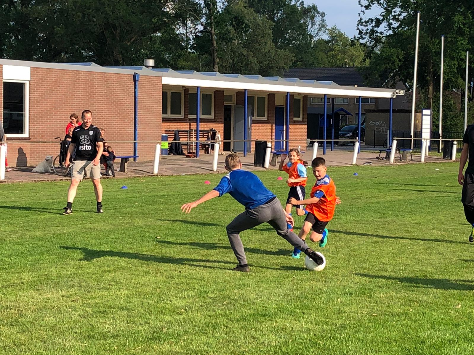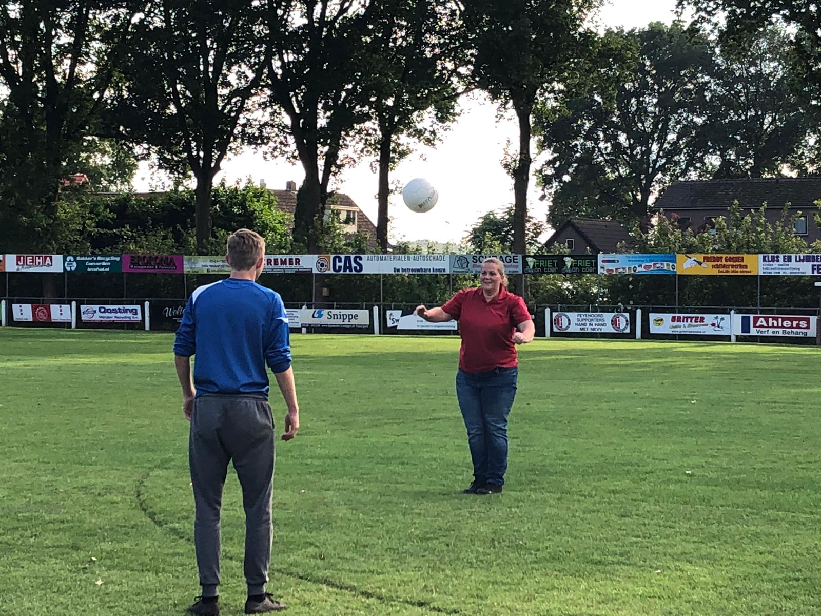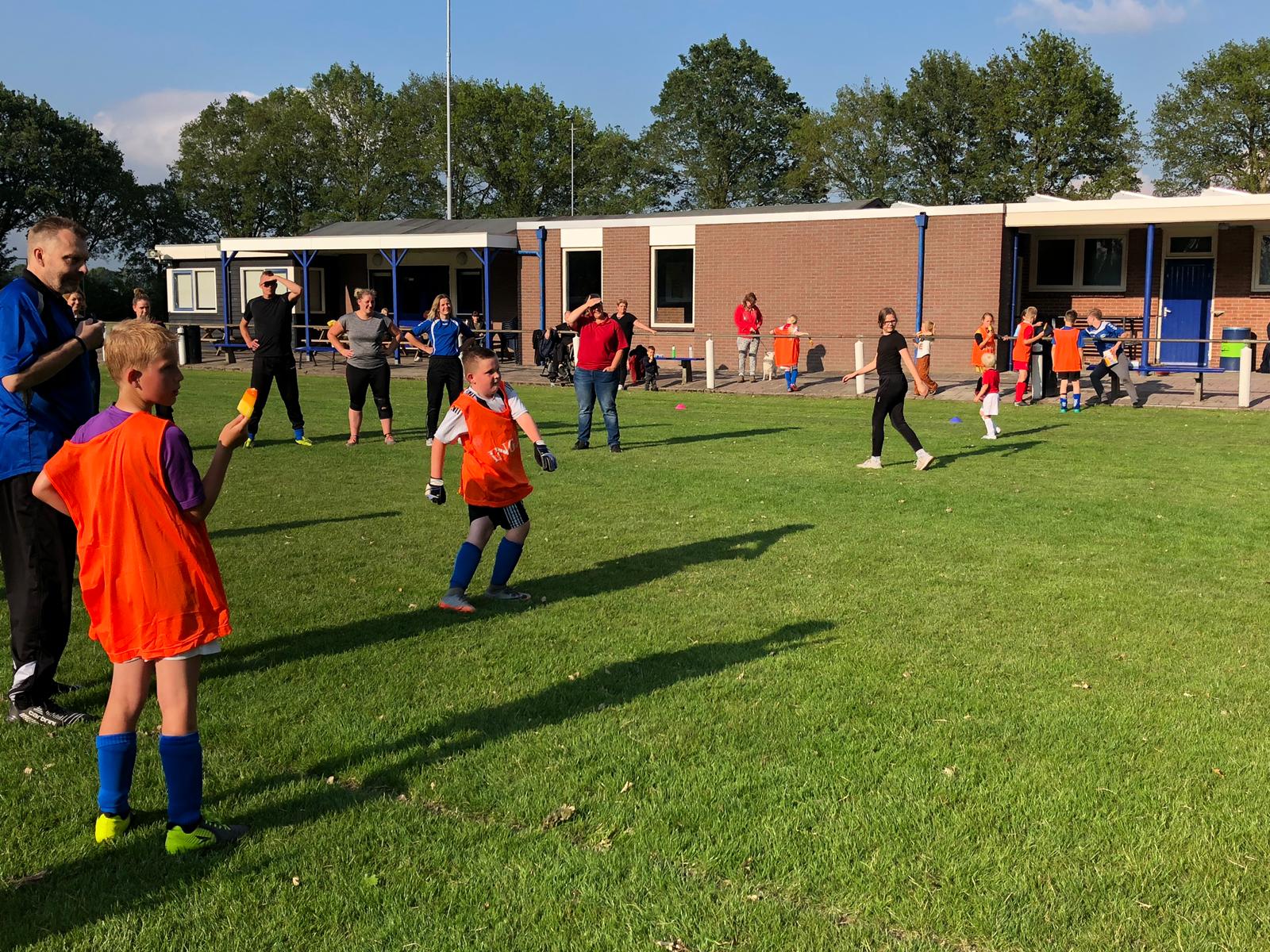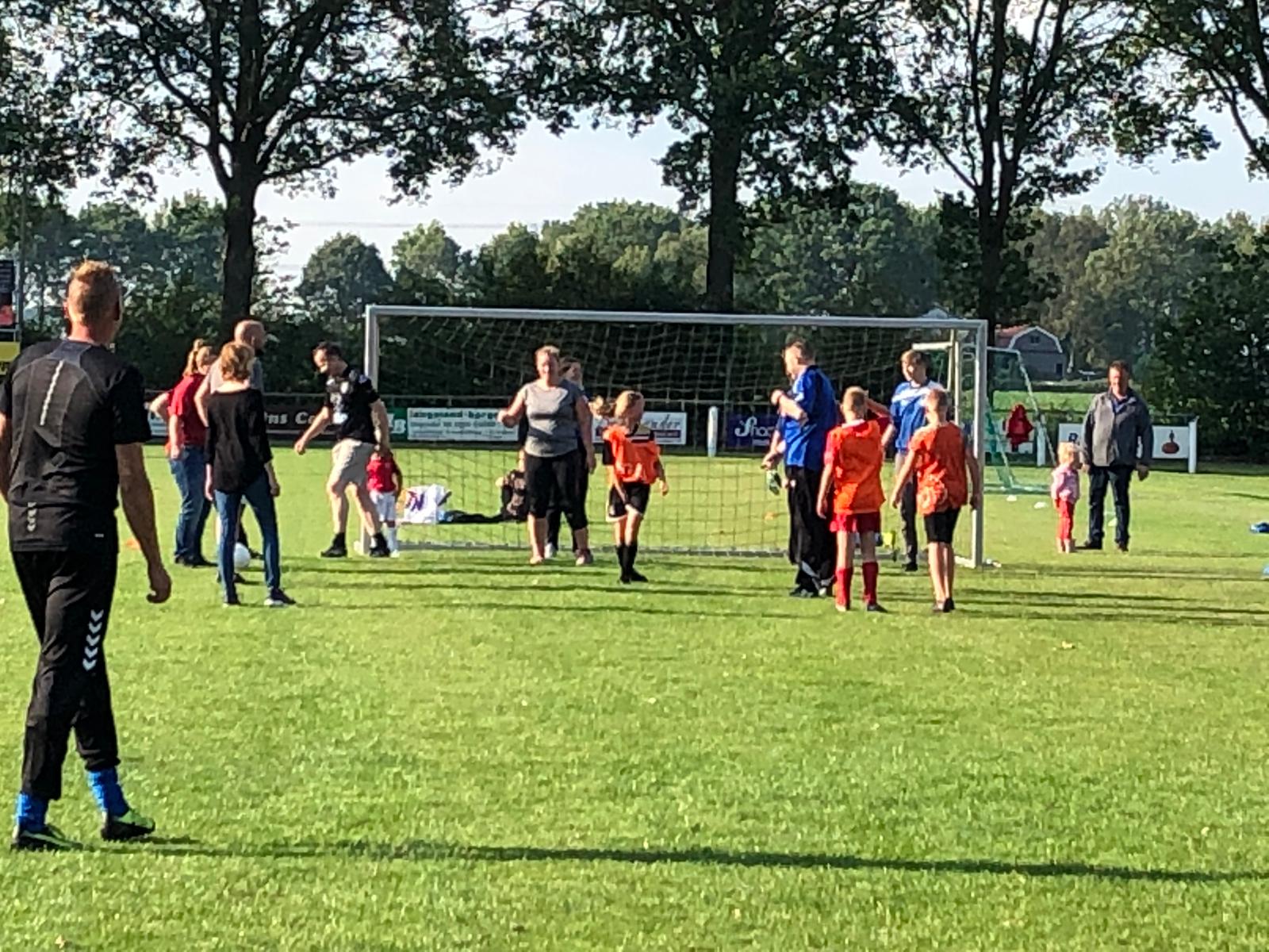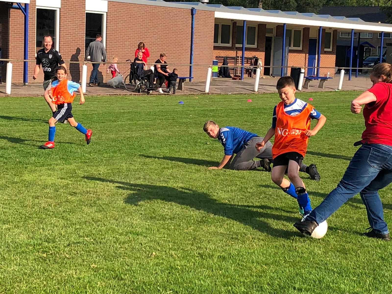 JO10 nam een slokje ranja, zocht wat klavertjes vier en dartelde na zestig seconden al weer op het veld. Na de zuurstof, massages en frisse zweetbandje, was ook team ouders na tien minuten klaar voor de tweede helft.